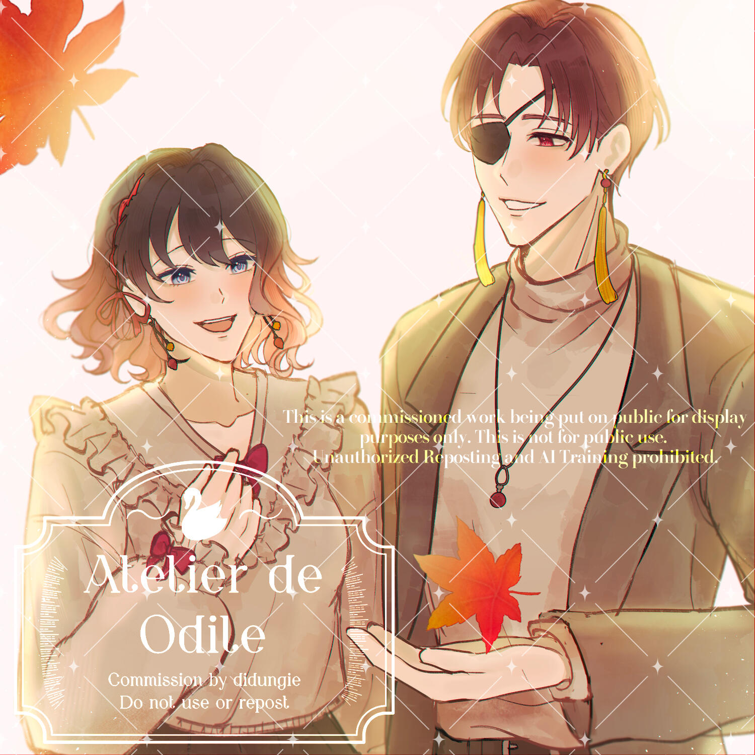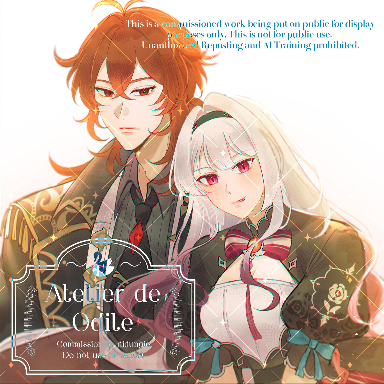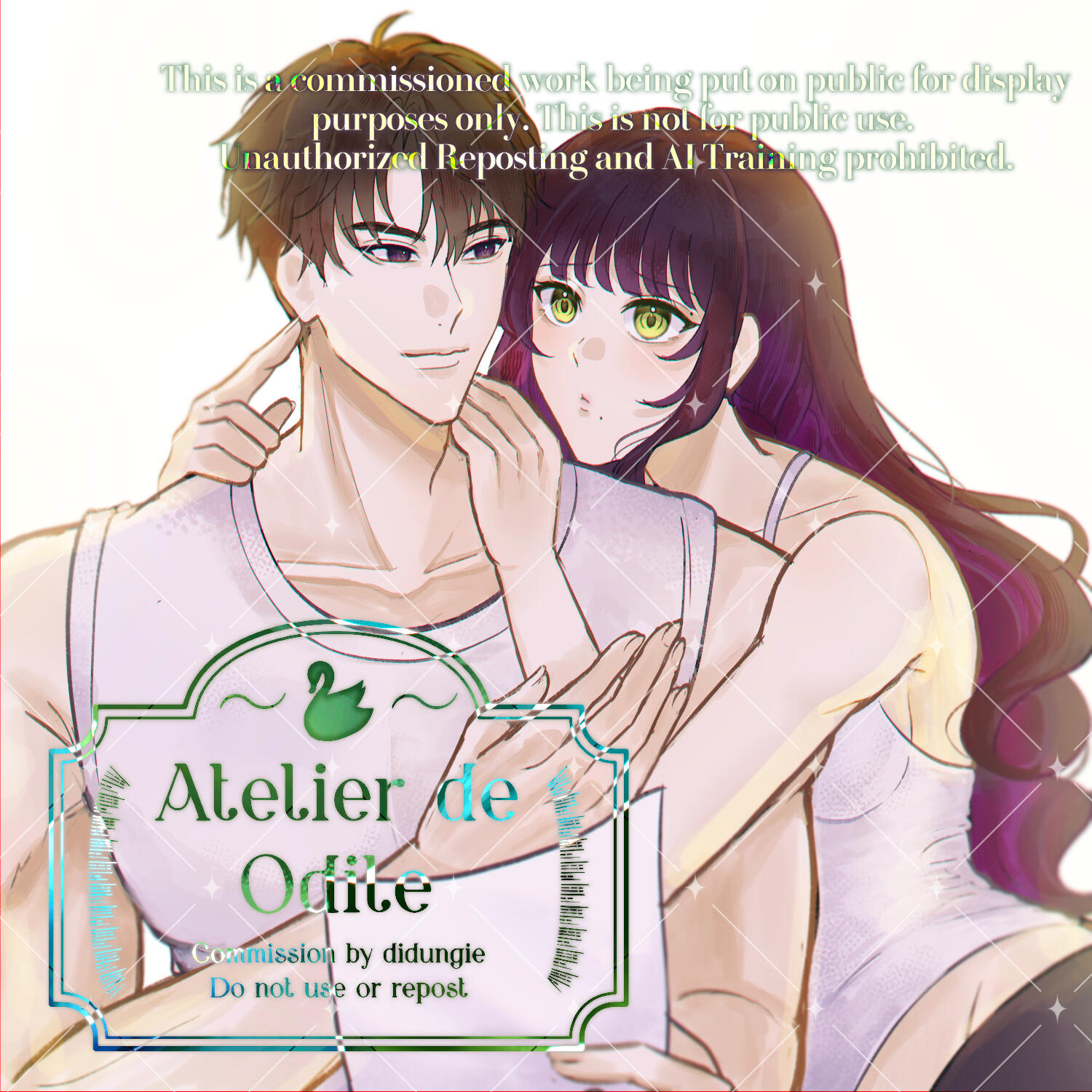 Please provide me with a clear information of your character and references. (I prefer to have you also provide clear information of the couple (dynamic, the kind of atmosphere you desire, etc.) so I can have a better understanding of their relationship.)Only white/flat color/decorative backgrounds can be accepted.